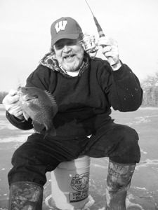Access is also an important factor when it comes to my ability to ice fish. A very arthritic hip keeps me from being able to walk long distances, so I need to be with someone who has a snowmobile or four-wheeler in order to get to any remote location. In fact, if it’s over 200 yards, my hip says NO! The best case scenario is when the ice is good enough to hold a vehicle, but then, that’s not prime bluegill time. That is when the fishing for walleye on Lake Poygan might be tempting enough to get me out there and the reason why I fish the Wolf River in certain locations: easy, walkable access. I might also be talked into some perch fishing out on Lake Winnebago, and if Dale Stroschein calls, I probably will go to Sturgeon Bay to fish for walleye or whitefish. But that is it … unless it’s bluegills.