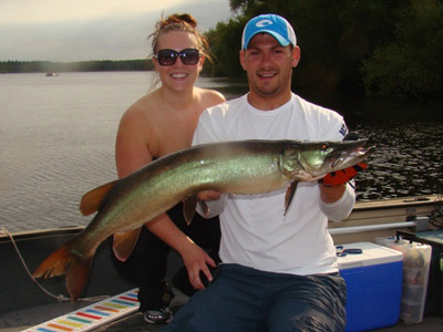 It was just over 2 hours before the next team would be on the boards as another husband and wife team Jason and Kylee Baratka would capture the big fish of the tournament. The hefty 44.5 inch fish came at 11:05 from the smallest lake on the chain, Elk Lake. Brandon and Nicole were still holding on as the next fish came in at 1:34 with Jake Stiener and Steve Holzum hooking a 40.5 from the waters of Duroy.